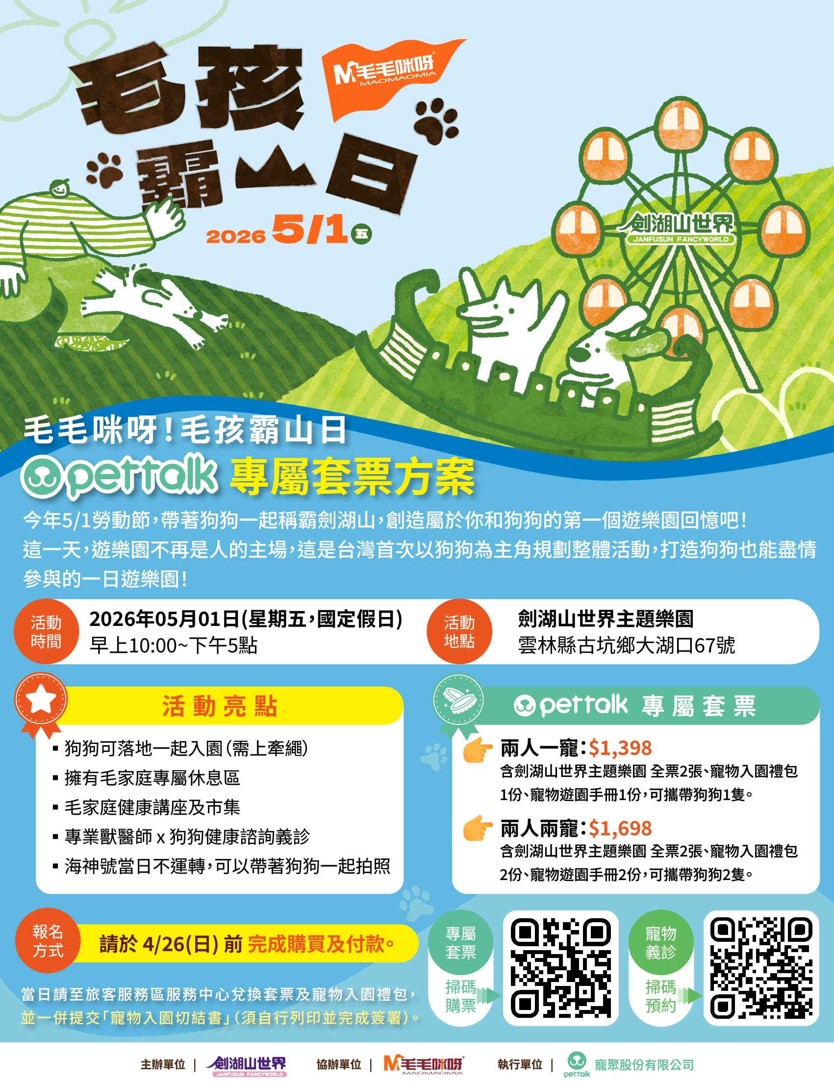 ????️ PetTalk專屬套票方案>> https://reurl.cc/K2XYAp