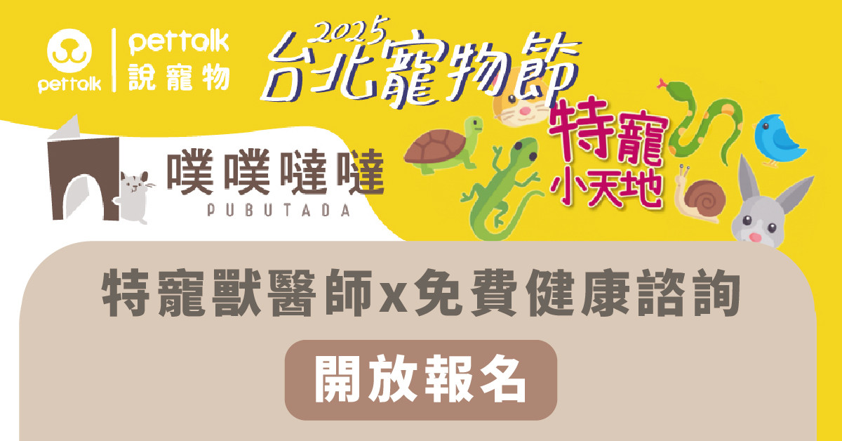 2025台北寵物節|【噗噗噠噠的特寵小天地】特寵獸醫師x免費健康諮詢開放報名