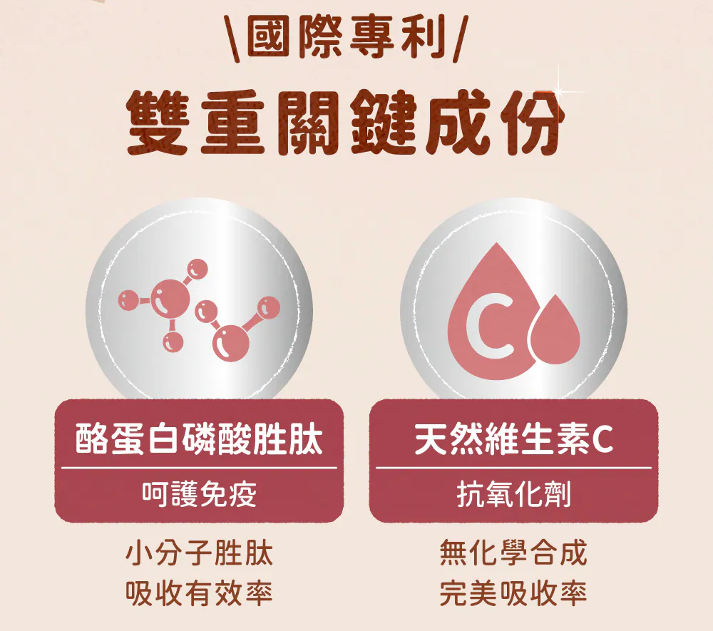如果能同時搭配胜肽類成分(如膠原胜肽、酪蛋白磷酸胜肽等),能進一步幫助細胞修復與免疫調節,讓抗氧化效果更加全面。
