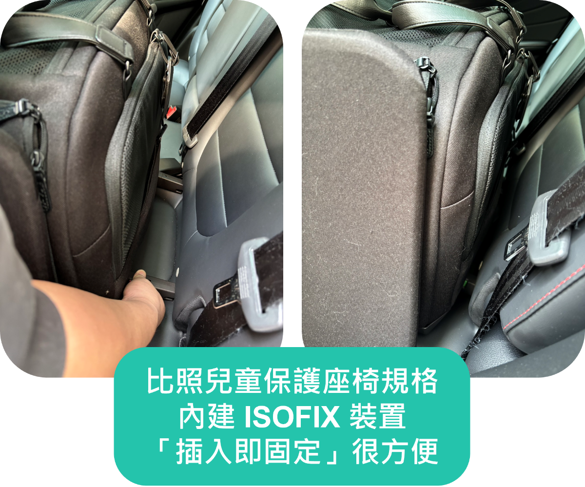 選擇專業防護設備:以寵物專用汽座品牌 Tavo 為例,在安全設計上,導入聯合國 ECE R129 兒童保護座椅標準,並經過嚴格的安全撞擊測試,確保在事故發生時也能有效防護;同時使用 ISOFIX 裝置來好好把汽座固定在車上。