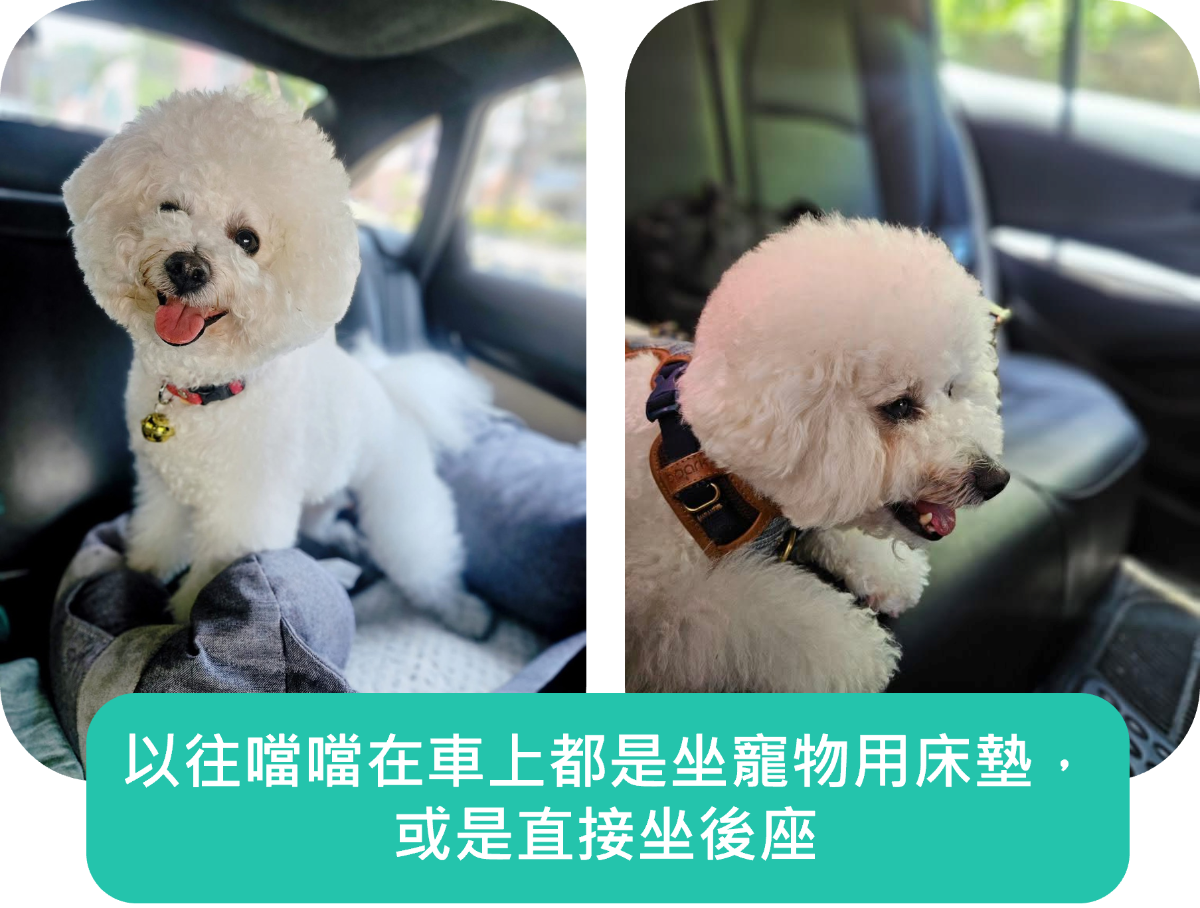 「我再也不用擔心牠會飛到前座或撞到車門了,全程我們都能享受沿途風景。」噹噹媽媽分享,臉上露出放心的微笑。隨著習慣養成,噹噹不僅行車安全感提升,白天活動量也增加,晚上在車內休息更安穩,整個旅程更順暢,也讓噹噹媽媽減輕不少壓力。