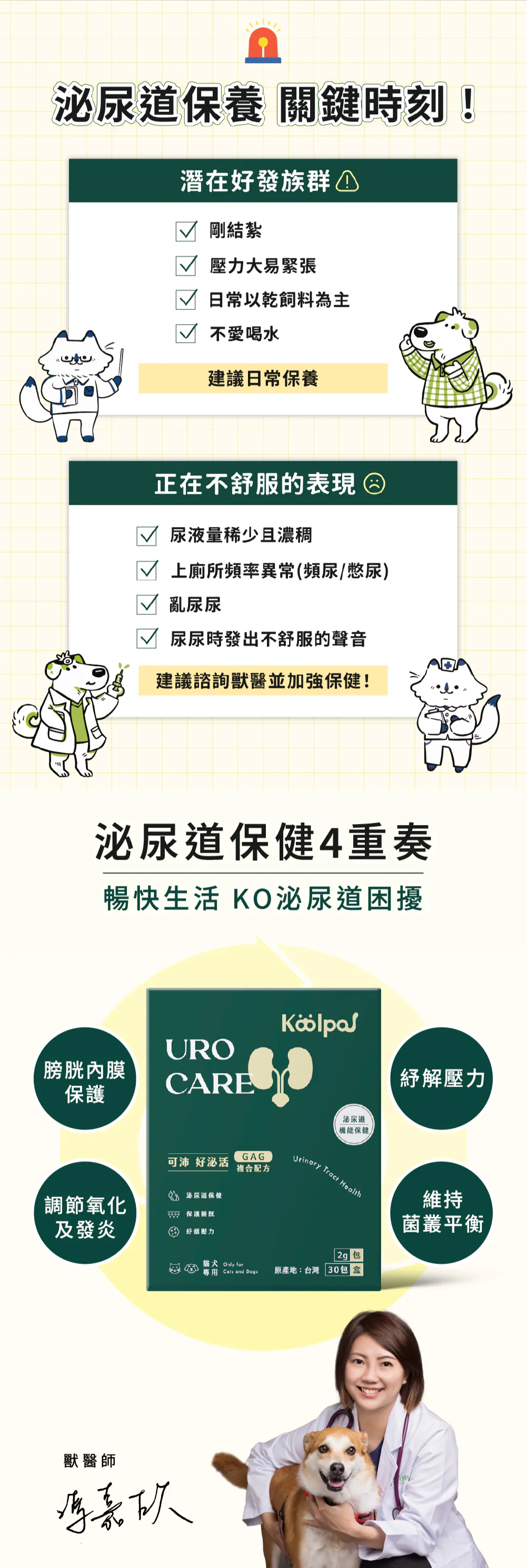 及早帶牠們到動物醫院進行專業檢查與診斷,才能守護牠們的泌尿系統健康!