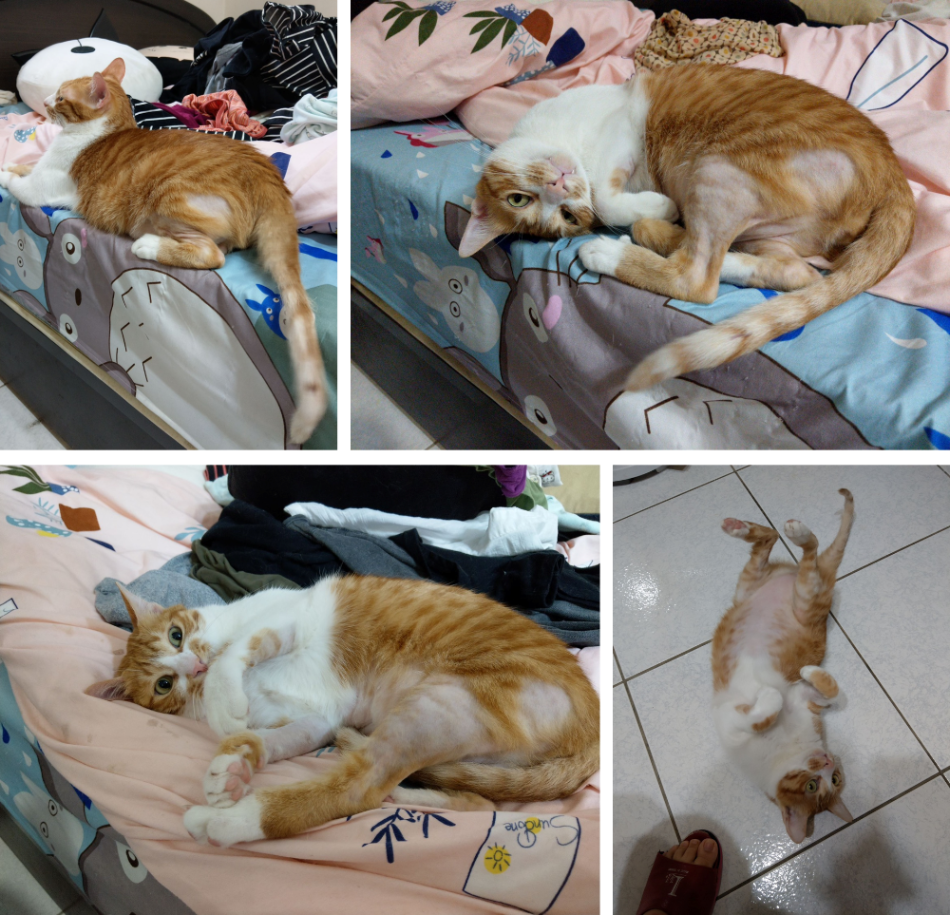 ▲柑仔的脫毛部位是一點一點擴大,從肚子一路延伸到腿部、尾巴