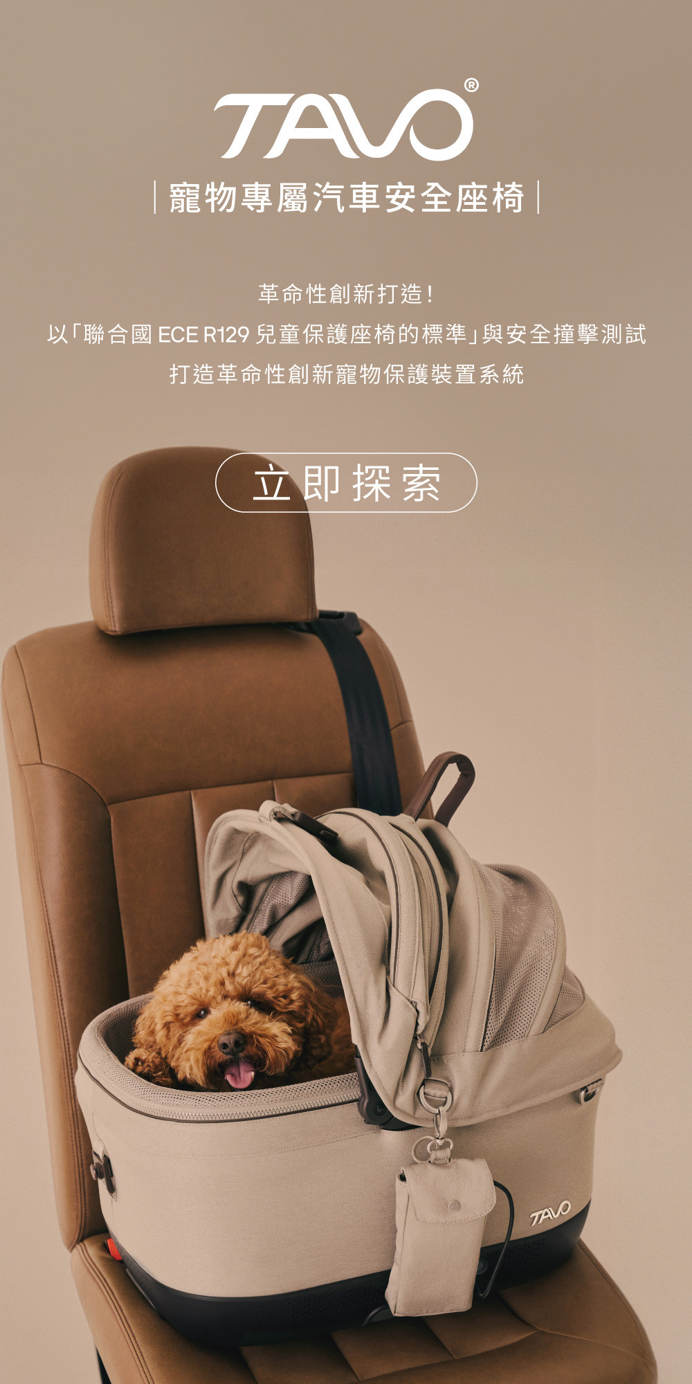 以 TAVO 為例,該品牌將嬰幼兒等級的安全規格延伸至寵物出行,導入聯合國 ECE R129 兒童保護座椅標準,並搭配嚴苛的安全撞擊測試,全面提升防護層級。同時,其專利側撞防護設計能在衝擊時吸收能量,進一步降低風險。座椅亦採用與嬰童汽座相同規格的 ISOFIX 安全裝置,透過「插入即固定」的設計,大幅強化整體的穩定性與安全性。