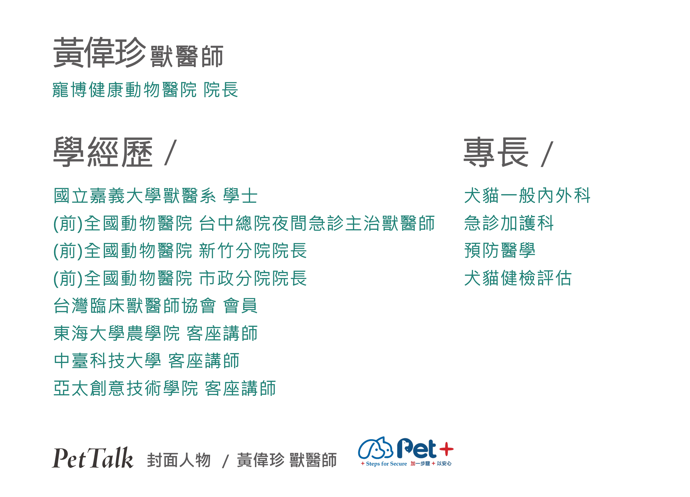 PetTalk團隊本次特別採訪位於台北市松山區寵博健康動物醫院的黃偉珍院長。寵博健康動物醫院成立的初衷,是希望動物醫院不再是「寵物生病時才會來的地方」,而是能陪伴毛孩一生健康管理的重要夥伴。院內長期推廣預防醫學、健康檢查與專業諮詢,希望讓毛爸媽能在疾病發生之前,就開始建立正確的照護觀念。
