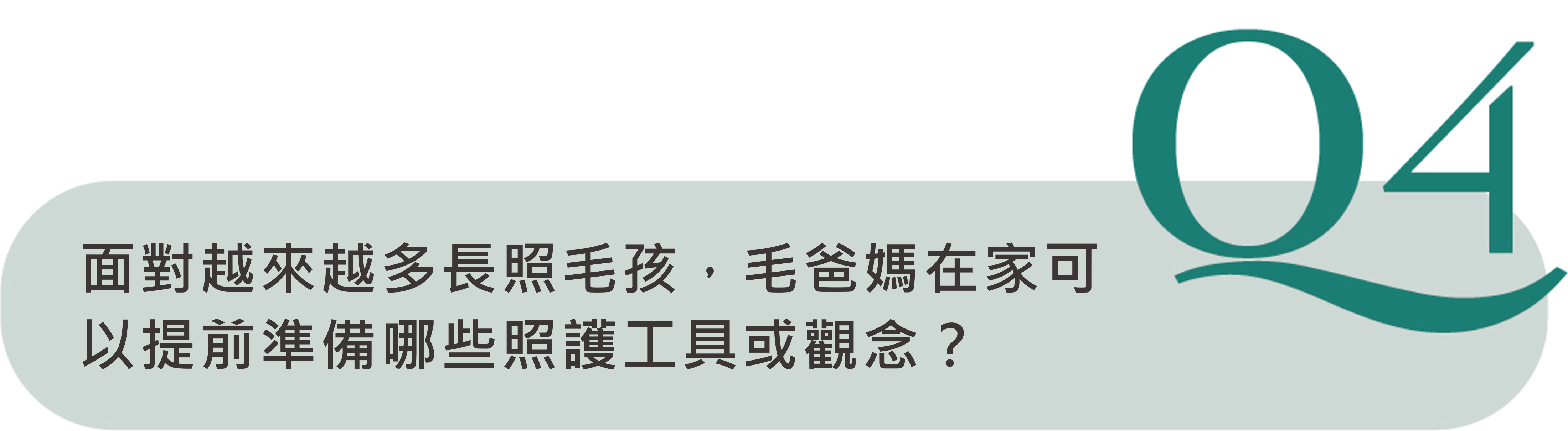 「寵物長照其實是一件很耗體力、也很耗心力的事情。」黃院長表示,許多毛爸媽不只需要付出照顧上的勞累,心理上也承受著不小的壓力。當照顧變得越來越困難時,能夠獲得來自獸醫師的專業諮詢與建議,便成為毛爸媽很重要的精神支持!