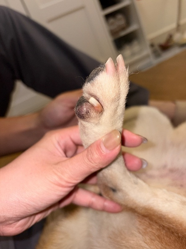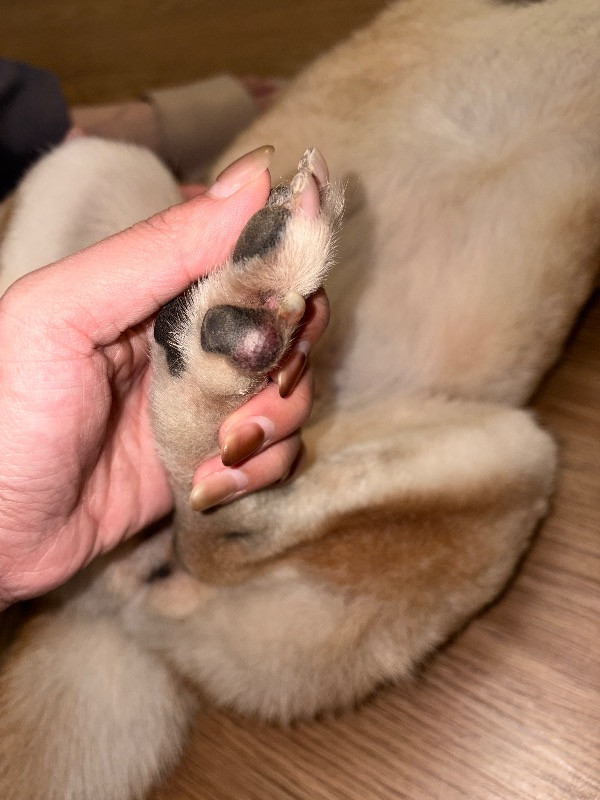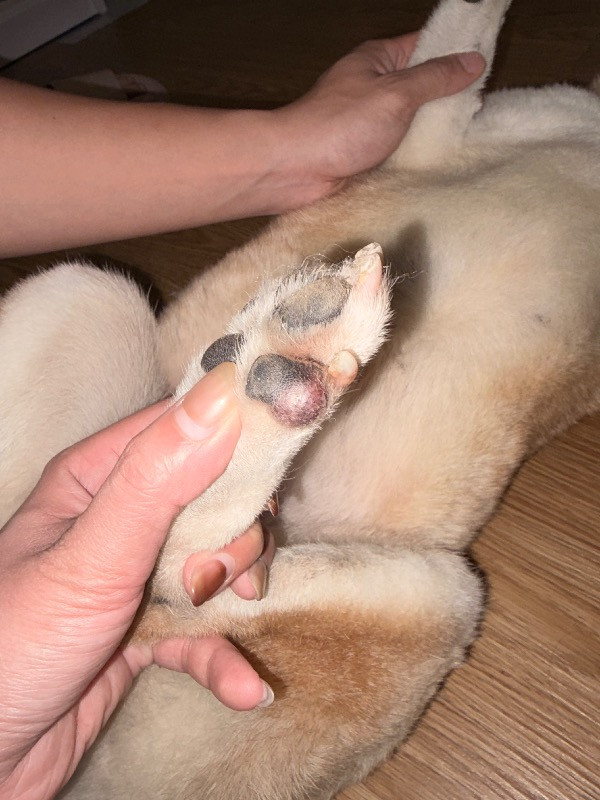 Patricia Pan 2025-12-25 大約一年前就發現狗狗腳掌有這顆紅腫塊,但這幾天發現似乎有變大一點點,但行動走跳都沒問題,輕輕按壓似乎不太會痛(沒有縮腳),有帶去給獸醫看,但獸醫並沒有特別說明是什麼腫塊,只說如果越來越大要切掉 0 分享–– 我也要提問