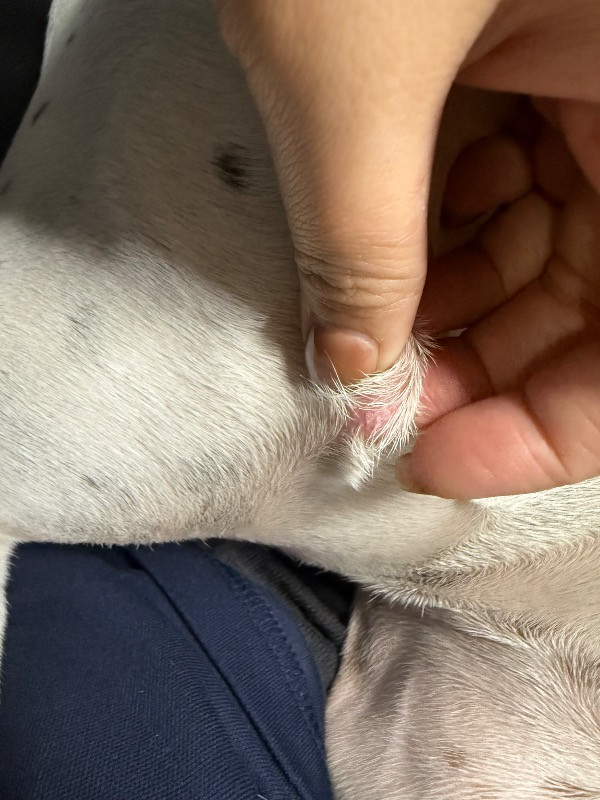皮膚病還是受傷 骨折掉入水溝的浪浪 從醫院接出後才發現腋下有傷口(如圖三)有試著給他戴頭套但一直被掙脫 好不容易戴住兩天結果昨天又掙脫 就變成圖一圖二了 (濕濕的是我用生理食鹽水擦拭) 因為他骨折又膽小 怕再帶去看醫生會摔到 請問這樣情況該怎麼辦 這是傷口還是皮膚病呢 謝謝醫生! Ruru Chen 搔抓身體